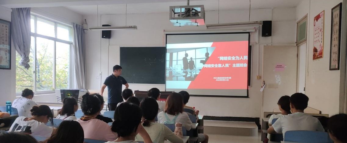 91114日,学院除新生外的全体本科班,组织召开了“网络安全为人民,网络安全靠人民”的主题班会,各班班主任及全体学生参与,班主任严格抓实抓细网络安全主题宣讲工作,并就网络安全、班级管理等开展教育,持续强化班风学风建设,强调积极建构风清气正的校园网络文化。主题班会后,各班向学院提交了学习简报。