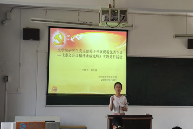 为进一步推动党史学习教育工作,437ccm必赢国际研究生党支部于2021年10月8日在我院2-302开展观看优秀党课——《遵义会议精神永放光辉》主题党日活动。学习会议由研究生党支部副书记韦龙招主持,437ccm必赢国际研究生党支部全体成员参会。